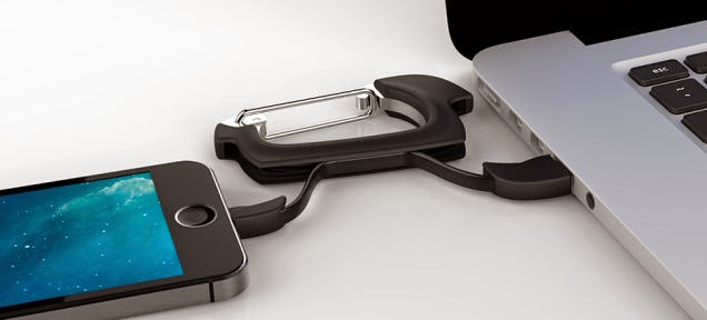 Jak sama nazwa wskazuje, jest to połączenie kabla do ładowania i karabińczyka. Na co dzień może nam służyć jako breloczek, do trzymania kluczy przy spodniach czy identyfikatora w pracy. A gdy najdzie potrzeba na ładowanie telefonu czy przeniesienie danycch, wystarczy jeden ruch i Carabiner Charging Cable połączy naszego smartfona z komputerem lub ładowarką: